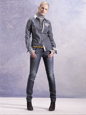 С красивой нашивкой и вышивкой на груди. Узкий, приталенный покрой. Длина разм. 38 ок. 67 см. 97% хлопок, 3% эластан. Машинная стирка.