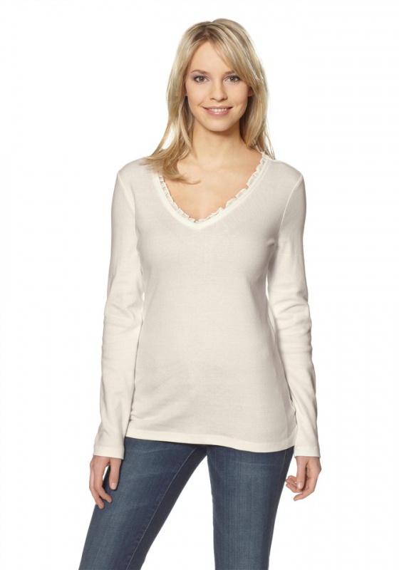 Женская кофточка, Flashlights. Отделка рюшами на V-образном вырезе Длина ок. 68 см. Покрой великолепно подчёркивает фигуру. 100 % хлопка (био-хлопок со знаком PURE WEAR).