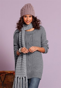 Женский длинный пуловер, Flashlights. Изящная вязка с узором косичкой спереди. Большого размера. Круглый вырез, широкая окантовка рукавов. Длина ок. 76 см. Покрой красиво обыгрывает фигуру. Из 85% полиакрила, 15% полиамида.