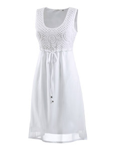 Элегантное женское платье на лето с вязаной верхней частью. Пояс на кулиске. С двойной юбкой. Длина ок. 100 см. 75% вискоза, 25% хлопок.