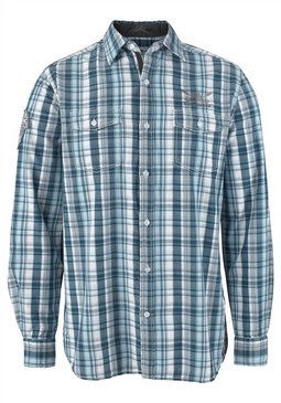 Мужская рубашка в клетку, Rhode Island. Контрастная вставка на планке застёжки на пуговицы и отворотах манжетов. Два кармана на груди. Роскошная вышивка на груди и спине. Принт на правом рукаве. Из 100% хлопка.