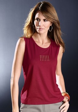 Стильный женский кофта-топ. Спереди украшен камушками. Подчеркивающий фигуру крой. Длина разм. 42 ок. 62 см. 50% хлопок, 50% модал.