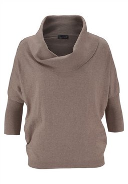 Модный женский пуловер. Тонкий трикотаж, с широким воротником-гольф. Нижний край и окантовки рукавов в рубчик. Длина ок. 68 см. Покрой красиво обыгрывает фигуру. 50 % хлопок, 50 % полиакрил.