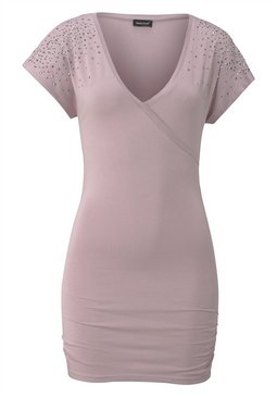 Стильная женская удлиненная кофта из джерси. С эффектом запаха. Декорирована сверкающими заклепками. Длина ок. 76 см. 92% хлопок, 8% эластан.