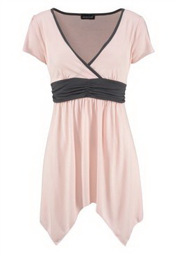 Стильная женская кофта ассиметричного покроя, заостренные края. Декоративная контрастная окантовка на V-образном вырезе с эффектом запаха. Драпировка под грудью, отлично сидит благодаря сборкам сзади. Длина ок. 76 см. Расклешенный книзу покой.65% полиэстер, 35% вискоза.