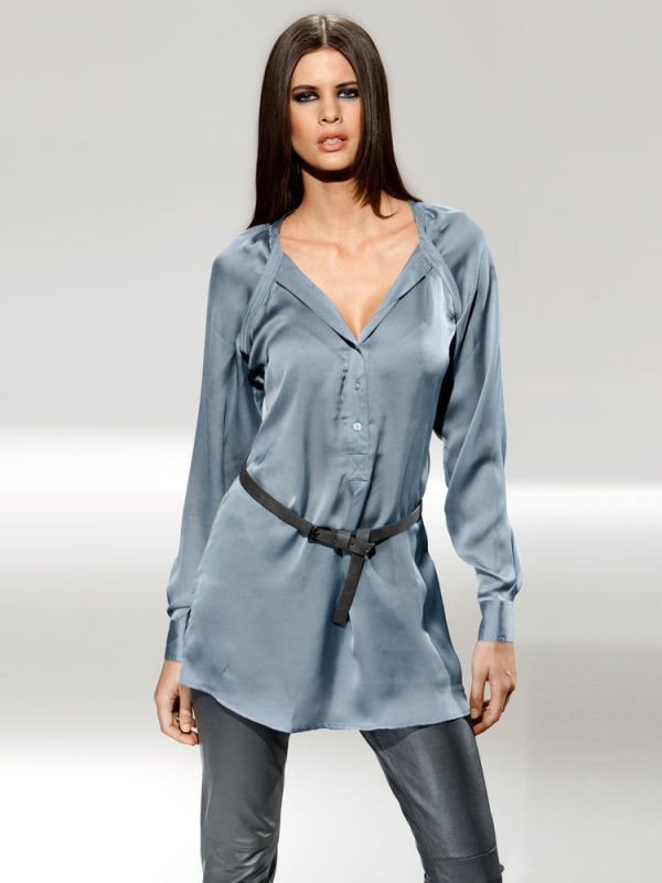 Женская сатиновая блузка, Patrizia Dini. Экстаравагантная дизайнерская модель. Глубокий V-образный вырез горловины. Обыгрывающий фигуру покрой. Длина ок. 76 см. 100% полиэстера. Машинная стирка.