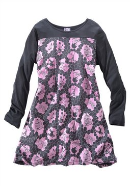 Модная женская туника. В стиле Babydoll, принт с французскими мотивами. Легкий, нежно струящийся материал. Однотонные длинные рукава и кокетка. Длина ок. 82 см. 92% вискоза, 8% эластан.