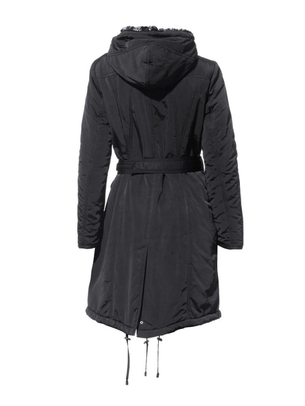 Женская благородная парка. Теплая, уютная, модная модель – топ-артикул! Великолепные детали: молния с двумя собачками, планка застежки на кнопки, капюшон с пушистым искусственным мехом, карманы с клапанами, ремень, кокетка на плечах, кулиска для регулирования ширины. Длина ок. 96 см. Подчеркивающий фигуру покрой. Из 92% полиэстера, 8% полиамида. Подкладка и утеплитель: 100% полиэстера. Вставка из искусственного меха: 100% полиакрила. Машинная стирка.