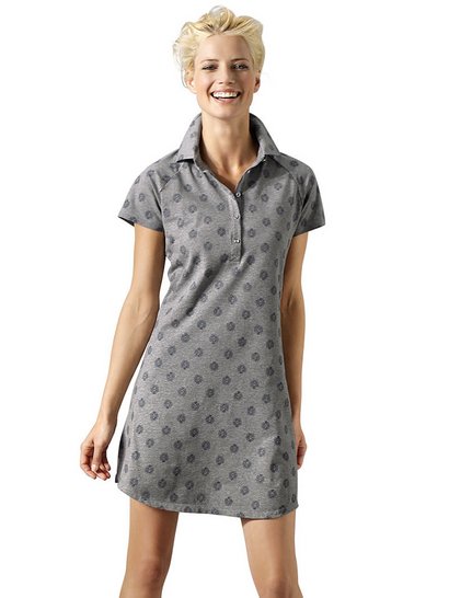 Женская ночная рубашка, Tommy Hilfiger. Полностью с рисунком герба. С воротником поло, планкой застежки на пуговицы и закругленным низом. Длина ок. 85 см. Подчеркивающий фигуру покрой. 95% хлопка, 5% эластана. Машинная стирка.