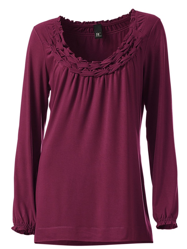 Женская кофта, Best Connections. Шикарна к джинсам и к костюму! Яркое зрелище - женственный круглый вырез горловины с завязочками под плетение. Полочка модно присборена, волнистые окантовки. Длина ок. 68 см. Подчеркивающий фигуру покрой. Мягко струящийся джерси из 95% вискозы, 5% эластана. Машинная стирка.