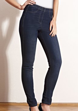 Стильные джинсы-леггинсы. Эластичный пояс. Ширина края брючин ок. 28 см. 84% хлопок, 15% полиэстер, 1% эластан.