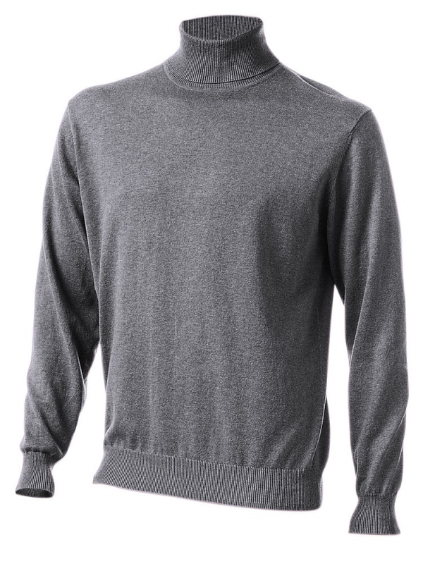 Пуловер мужской с воротником гольф, Sandro Pozzi. Смотрится изящно, прежде всего, с сакко, в бизнес-стиле, когда не нужен галстук! Рукава выполнены fully fashioned. Изящная вязка из 90% хлопка, 10% шелка. Машинная стирка.