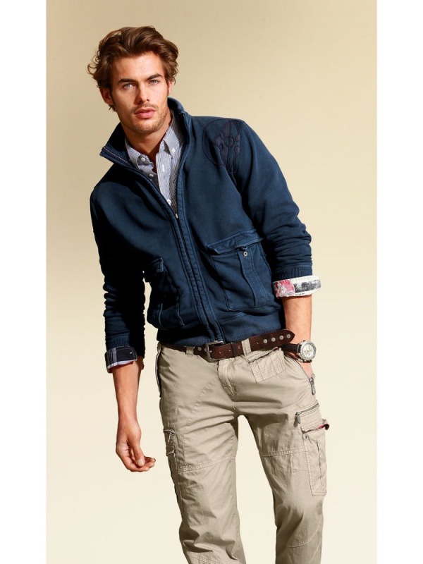 Трикотажная куртка. Спортивная и элегантная: ЕГО любимая модель! С модными аппликациями на плечах и рукавах. 2 накладных кармана на пуговице, эластичные окантовки на рукавах и по низу. 100% хлопка. Машинная стирка.