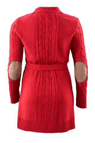 Стильная женская вязаная кофта. Эта мягкая уютная кофта должна быть в Вашем гардеробе. Оригинальный узор косичкой и лоскуты на рукавах из искусственной кожи-велюр создают великолепный образ. Легкий в уходе материал. Красивый и необычный шалевый воротник. Застёжка на 2-х пуговицах. Отличная посадка. Длина ок. 80-85 см. 100% полиакрил.