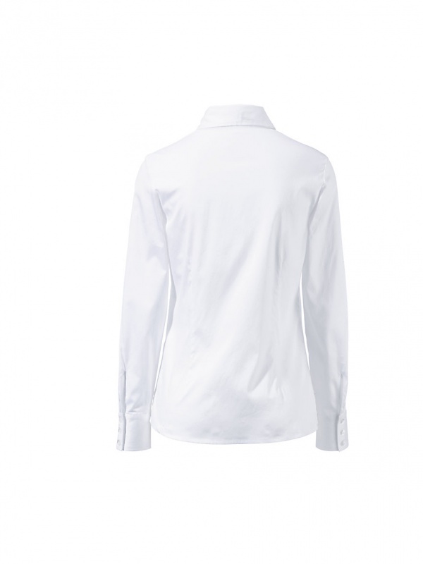Блузка женская, UTA RAASCH. Прекрасная блузка в классическом стиле. Возможность создать многочисленные образы. Съемный бант (можно носить как галстук), широкие манжеты на 3-х пуговицах, приталенный силуэт, закругленный низ. 97% хлопка, 3% эластана. Длина ок. 65 см. Машинная стирка.