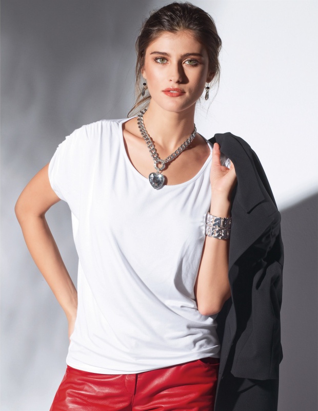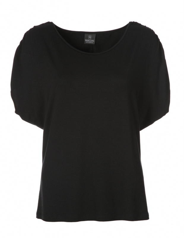 Элегантная женская кофта с круглым вырезом и широкими, слегка присборенными рукавами. Свободного покроя, идеальна для повседневной жизни. Из мягкой и шелковистой вискозы. Длина около 62 см. Состав: 95% вискоза, 5% эластан.