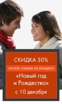9 декабря 2015 С 10 декабря приглашаем Вас приобрести подарки и аксессуары к Новому году и Рождеству со скидкой 30%! Участвуйте в акции! Спешите!