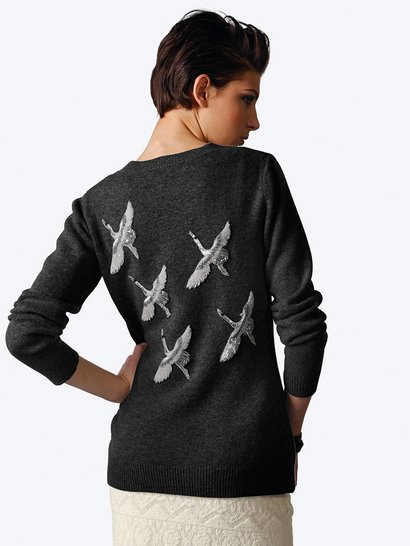 Оцените «Женский пуловер с аппликациями птиц на спинке, Alba Moda»: