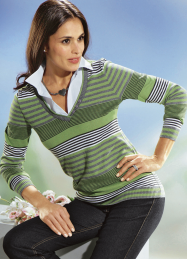 Оцените «Свитер женский с воротником блузки и V-образным вырезом»: