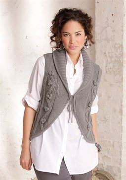 Оцените «Женский жилет с оригинальным сочетанием рисунков вязки спереди»: