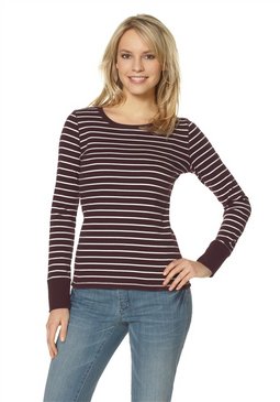 Женская футболка с длинными рукавами в полоску, Arizona. Абсолютный хит, без которого не обойтись! Длинные рукава с однотонными манжетами. Длина ок. 64 см. Очень узкий покрой. Из 100% хлопка со знаком «Cotton made in Africa» (Африканский хлопок).