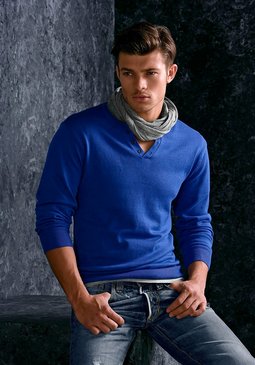 Мужской пуловер, John Devin. С 3 небольшими декоративными пуговицами на V-образном вырезе. 50% хлопка, 50% полиакрила.