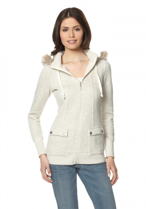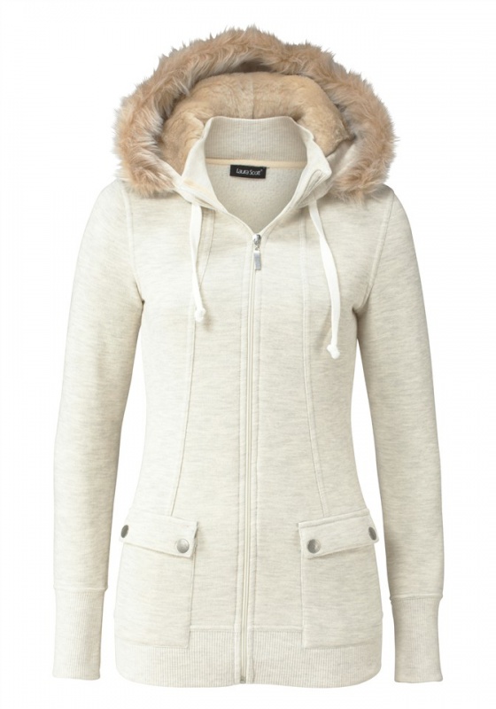С модными деталями: Окантовка и подкладка капюшона из искусственного меха, накладные карманы с клапанами и застежкой на кнопку, манжеты из трикотажа в рубчик. Стильная отстрочка на застёжке на молнию. Разделительные швы. Длина ок. 72 см. Очень узкий покрой. Трикотаж с лёгким начёсом: 98 % хлопка, 2 % полиэстера. Искусственный мех: 90 % полиакрила, 10 % полиэстера. Подкладка капюшона: 100 % полиэстера.