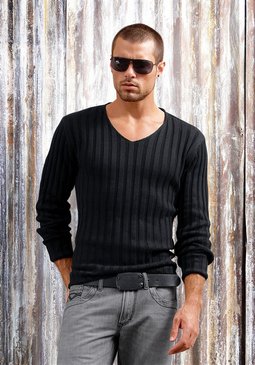 Мужской пуловер, Bruno Banani. С V-образным вырезом. Сохраняющий форму трикотаж в рубчик. Узкий фасон. Из 50% хлопка, 50% полиакрила.