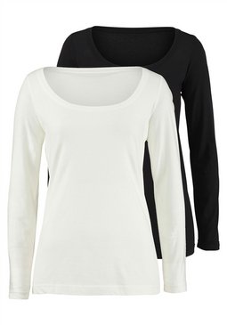 Женская удлиненная кофточка. В комплекте 2 штуки. Отличная модель для комбинирования. Широкий круглый вырез. Длина ок. 68 см. 100% хлопок.