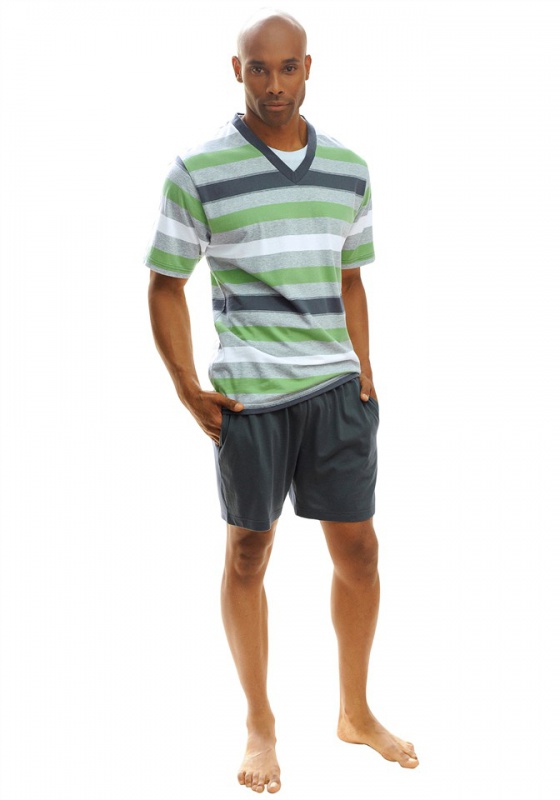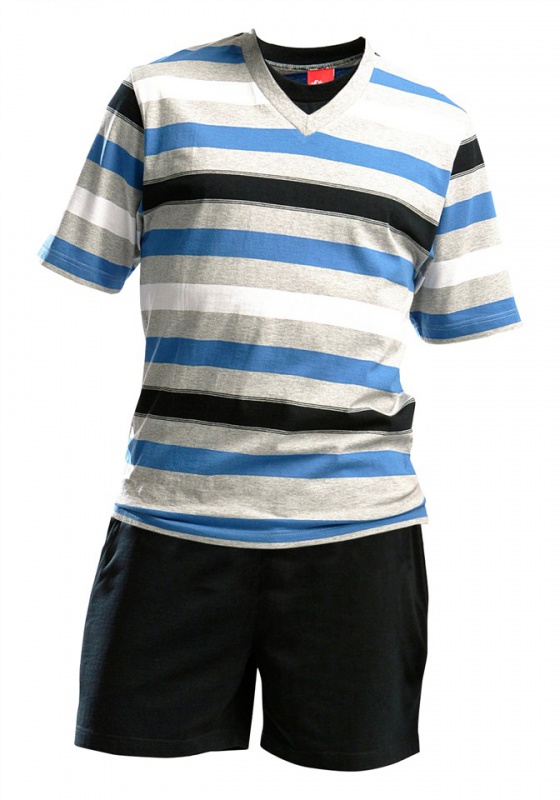 Мужская пижама, s.Oliver. Футболка в полоску, с V-образным вырезом горловины. Шорты однотонного цвета. Из 100% хлопка.