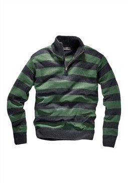 Мужской пуловер, Grey Connection. Пуловер с актуальным рисунком в широкую полоску, с потайной застёжкой на молнию и окантовкой на рукавах и по нижнему краю. Лёгкий материал из хлопка в сочетании с полиакрилом. Состав: 50 % хлопка, 50 % полиакрила. Длина спинки: для разм. 48/50 ок. 68 см. Длина рукавов: для разм. 48/50 ок. 63 см.