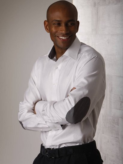 Мужская рубашка, Alba Moda. Из экологически произведенного материала "bluesygn by getzner". Модная посадка с воротником на стойке и отделками на локтях. Обтачка воротника, стойка воротника и планка застежки на пуговицы из контрастного материала. Со шлицами рукавов на пуговицах и варьируемой шириной манжет. Длина по cgnyrt jr/ 79 см. 100% хлопка. Машинная стирка.