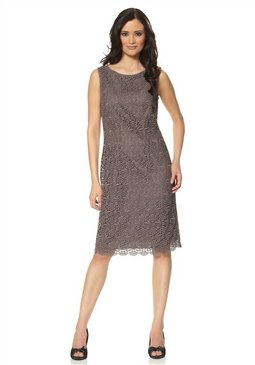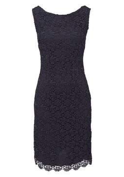 Стильное женское платье из прозрачного кружева. Не просвечивается благодаря нижнему платью. Слегка завышенный вырез-«лодочка». Сзади глубокий вырез. Широкие бретели. Сзади на молнии. Длина с бретелями ок. 100 см. Кружево и нижнее платье: 100% полиэстер.