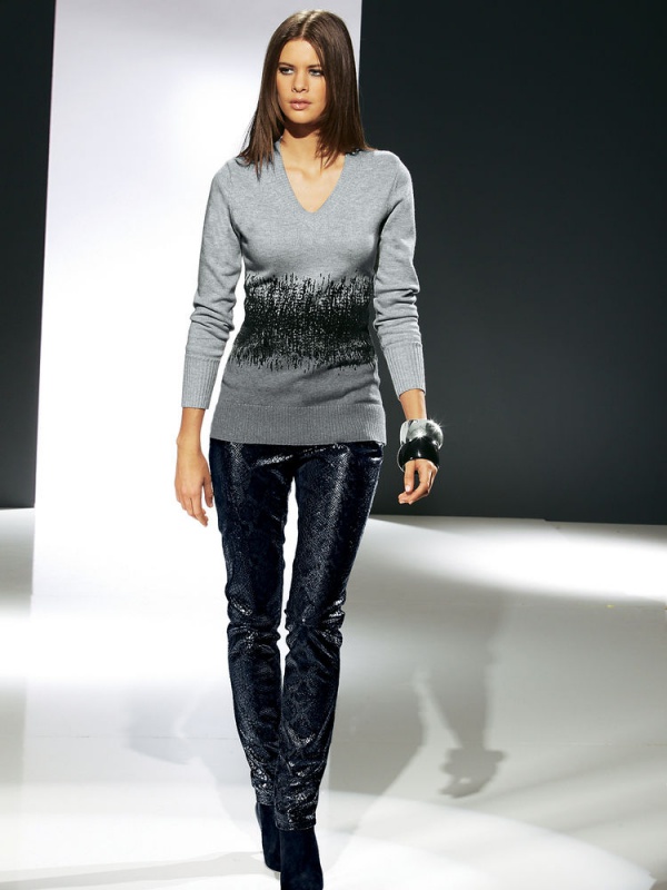 Женский пуловер, Patrizia Dini. Великолепная, дизайнерская, вязаная модель! Просто подчеркивает стиль, превращает широкий, пушистый рисунок на уровне талии в яркое зрелище. Слегка приталенного покроя, длина ок. 68 см. Подчеркивающий фигуру покрой. Из 55% шерсти, 45% полиакрила. Машинная стирка.