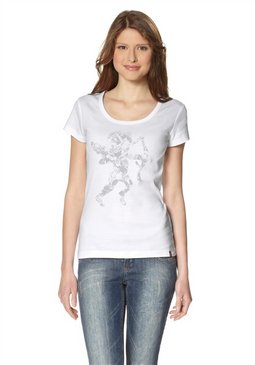 Модная женская кофта с эффектным принтом спереди. Длина ок. 65 см. Трикотаж в мелкий рубчик из 100 % хлопка.