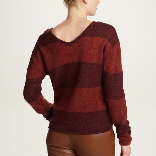 Модный женский пуловер. Приспущенная линия плеча. V-образный вырез на спине. Длина ок. 60 см. 50% акрил, 30% полиамид, 20% мохер.