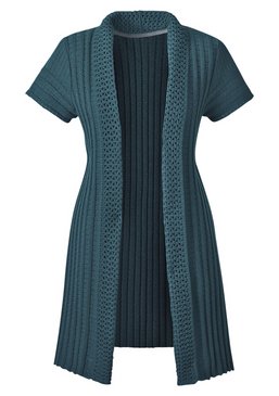 Стильная вязанная кофта с широкой ажурной планкой.Короткие рукава.Длина размера 42 ок. 82 см.100% полиакрил.