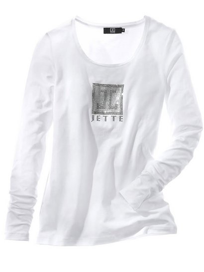Женская футболка с длинными рукавами, JETTE со стразовым фирменным логотипом спереди, круглым вырезом и длинным рукавом – подходит ко всему и отлично выглядит! Длина разм. 38 ок. 66 см. Узкий, приталенный силуэт. Состав материала: 47% хлопок, 47% модал, 6% эластан. Машинная стирка.