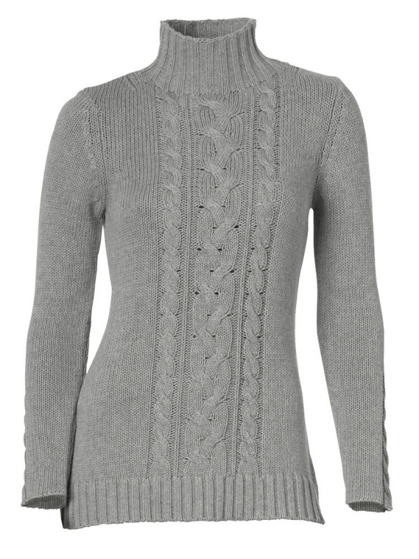 Женский пуловер, Best Connections. Встречайте зиму хорошо одетой! Пуловер выглядит модно благодаря выполненной комбинации узоров косами спереди. Связанный по форме воротник-стойка в рубчик приятно сохраняет тепло. Длина ок. 64 см. Подчеркивающий фигуру покрой. Изящная вязка из 100% хлопка. Машинная стирка.