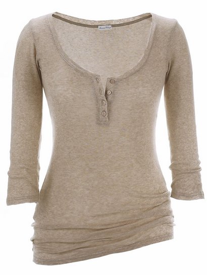 Хэнли - футболка с короткой застежкой на пуговицы, рукавом длиной 3/4 и круглым вырезом. Длина разм. М (38) ок. 71 см.