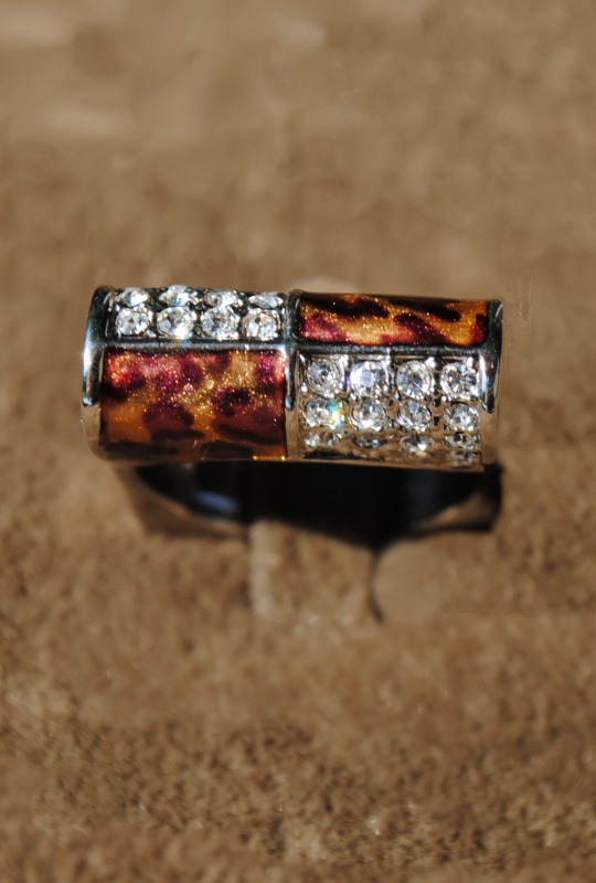 Экстравагантное кольцо интересной прямоугольной формы с кристаллами Swarovski и ярким леопардовым рисунком. Оригинальная модель, которая обязательно привлечет к себе внимание.
