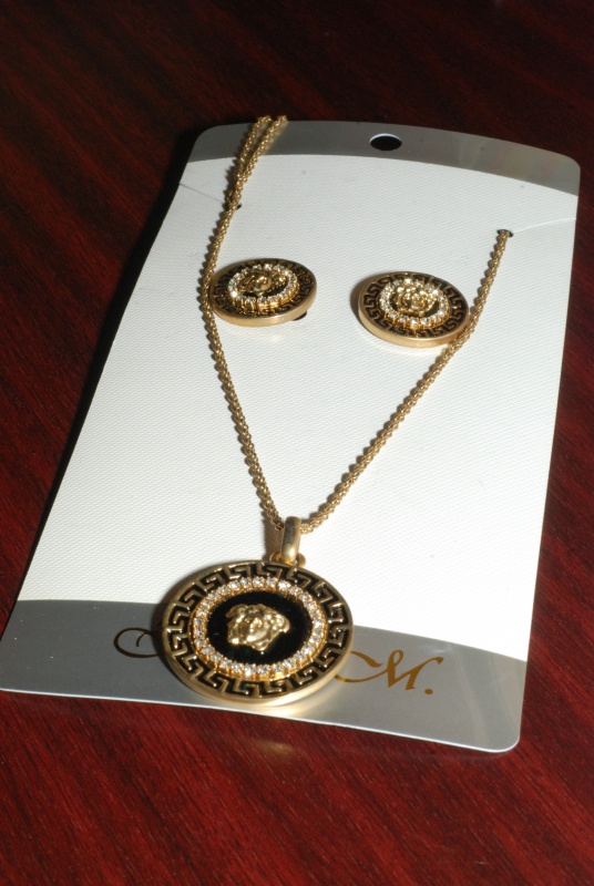 Стильные серьги-гвоздики и кулон, украшенные эмалью и стразами Swarovski. Размеры: диаметр серьги ок. 2 см, диаметр кулона ок. 3,5 см, длина цепочки ок. 52 см. Колье на регулируемой застежке. Серьги и колье идеально подойдут для завершения яркого, эффектного образа.