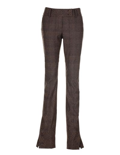 Элегантные женские брюки с оригинальным кроем. Пуговицы внизу брючин позволяют делать различные варианты носки. Состав: 68% шерсть, 30% полиэстер, 2% эластан. Подкладка: 100% ацетат. Длина для N-размеров ( с 18 по 21 ) - 103 см, для K-размеров ( с 36 по 46 ) - 97 см. Ширина по низу около 34 см.