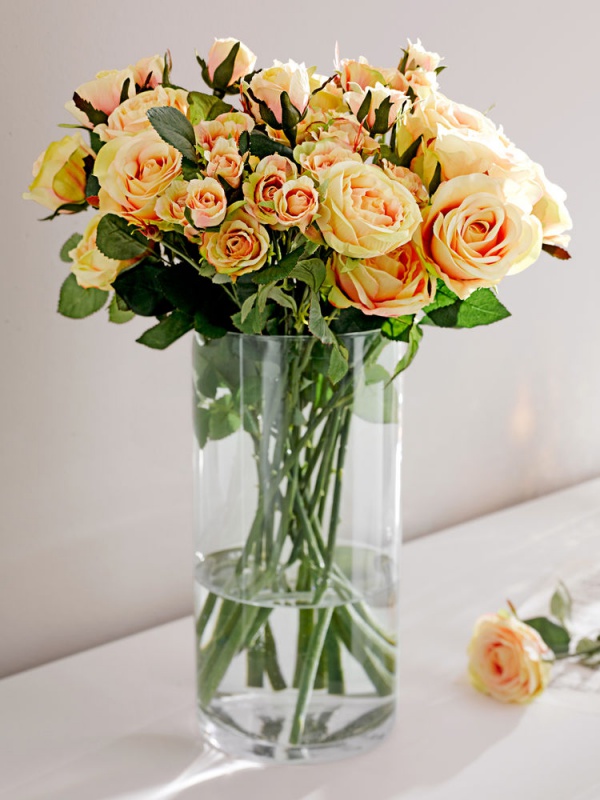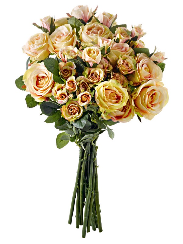 Декоративный цветочный букет. Восхитительно красивый и обманчиво натуральный. Из пластмассы и текстиля, со стеблями, которые можно ставить в воду. Длина ок. 46 - 50 см. Без вазы.
