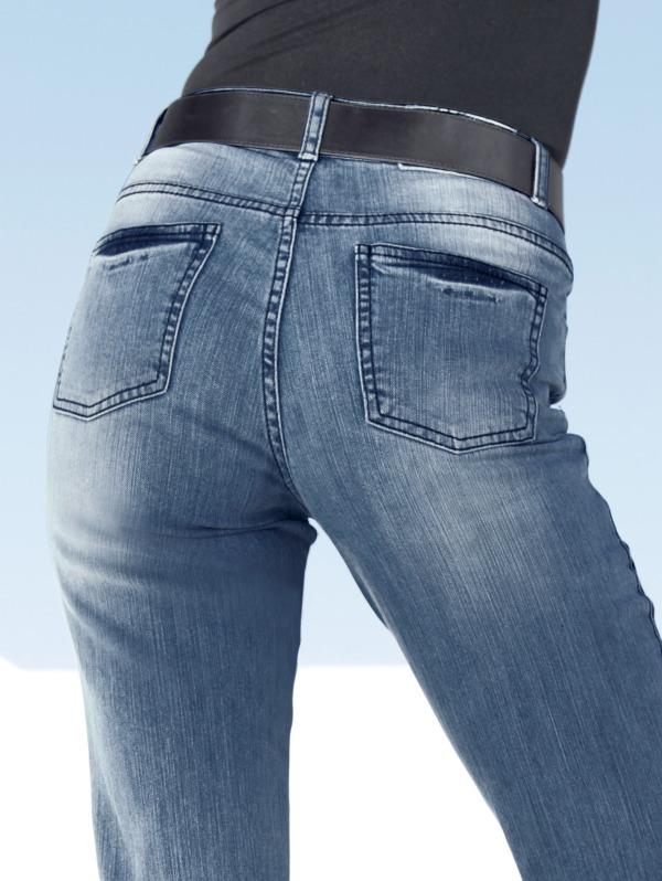 Джинсы «Стокгольм», узкие прямые, с комфортной высотой сиденья. Покроя с 5 карманами, с поясом, выкроенным слегка закругленным. Кружевные аппликации с вышивкой спереди. Выбеленные эффекты спереди и сзади. Низ брюк от 42 см. Из 98% хлопка, 2% эластана; кружево из 100% полиэстера. Длина с поясом N-размеров (с 36 по 52) ок. 106 см, К-размеров (с 18 по 26) ок. 100 см.