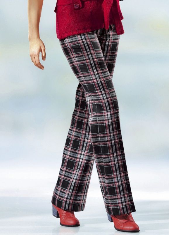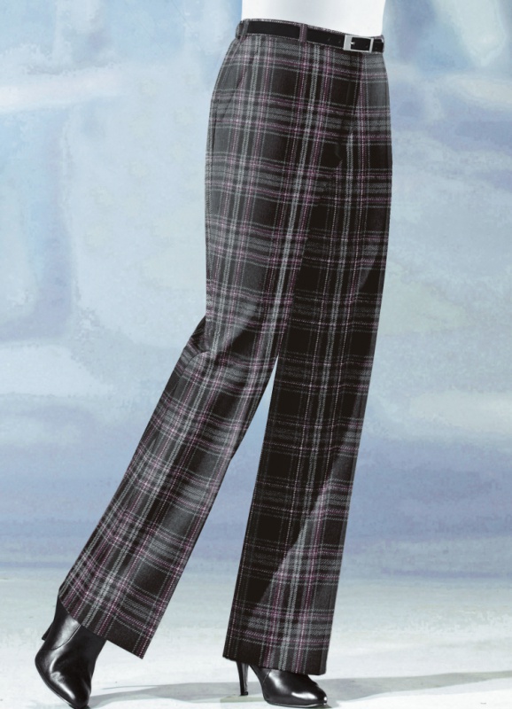 Женские клетчатые брюки с поясом, молнией и боковыми карманами. Состав: 35% шерсти, 20% полиэстер, 20% акрил, 20% хлопка и 5% других волокон. Подкладка: 100% полиамид.