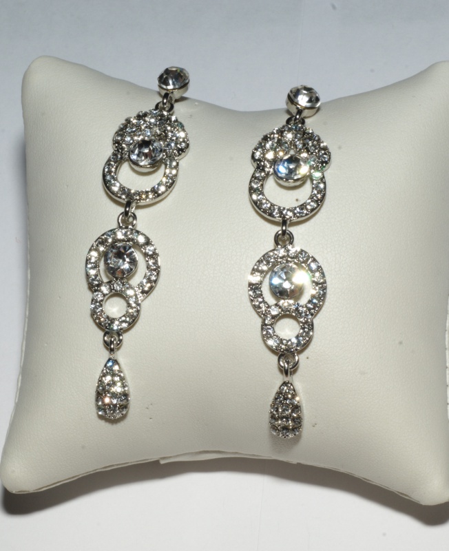 Изумительные серьги, полностью инкрустированные сверкающими стразами. Прекрасный аксессуар, который сделает Ваш образ ярким и незабываемым! Длина изделия ок. 7 см.
