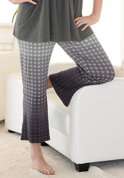 Брюки из джерси женские. Эффектный принт с переходом цвета. Удобный свободный покрой, эластичный пояс. Длина брючин с внутренней стороны ок. 76 см. 95% вискоза, 5% эластан.