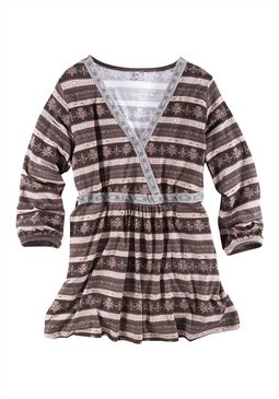 Стильная женская кофточка с принтом.В свободном стиле. Окантовка с контрастным рисунком вдоль V-образного выреза и под грудью. Длина в зависимости от размера от ок. 72 до 80 см. 95% вискоза, 5% эластан.