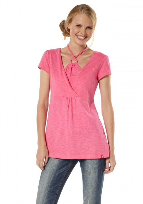 Современная женская кофта с эффектом 2-в-1. С пластмассовым кольцом и плетёной лентой, которую можно завязать на шее. Эффект запаха и шов под грудью. А-образный покрой — для идеального сочетания с узкими брюками. Длина ок. 68 см. Структурный трикотаж из 100 % хлопка.
